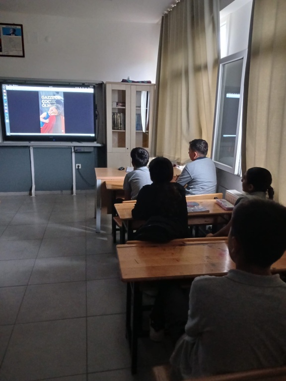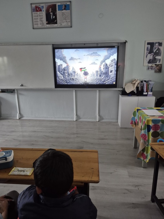 Okulumuzda, öğrencilerimizin küresel olaylara duyarlılık geliştirmesi, insan hakları ve barış konularında farkındalık kazanması amacıyla Filistin’de yaşanan insani krize dikkat çeken kısa bilgilendirici videolar izletilmiştir.